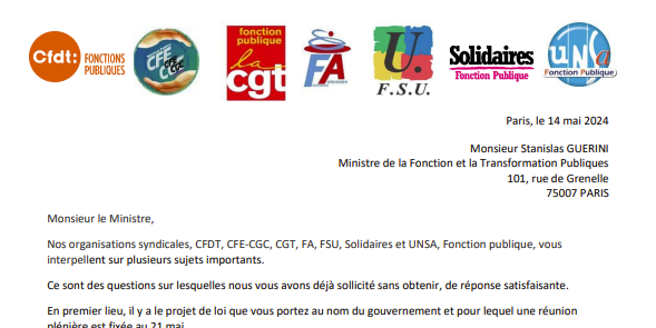 Nos organisations syndicales, CFDT, CFE-CGC, CGT, FA, FSU, Solidaires et UNSA, Fonction publique, vous interpellent sur plusieurs sujets importants.