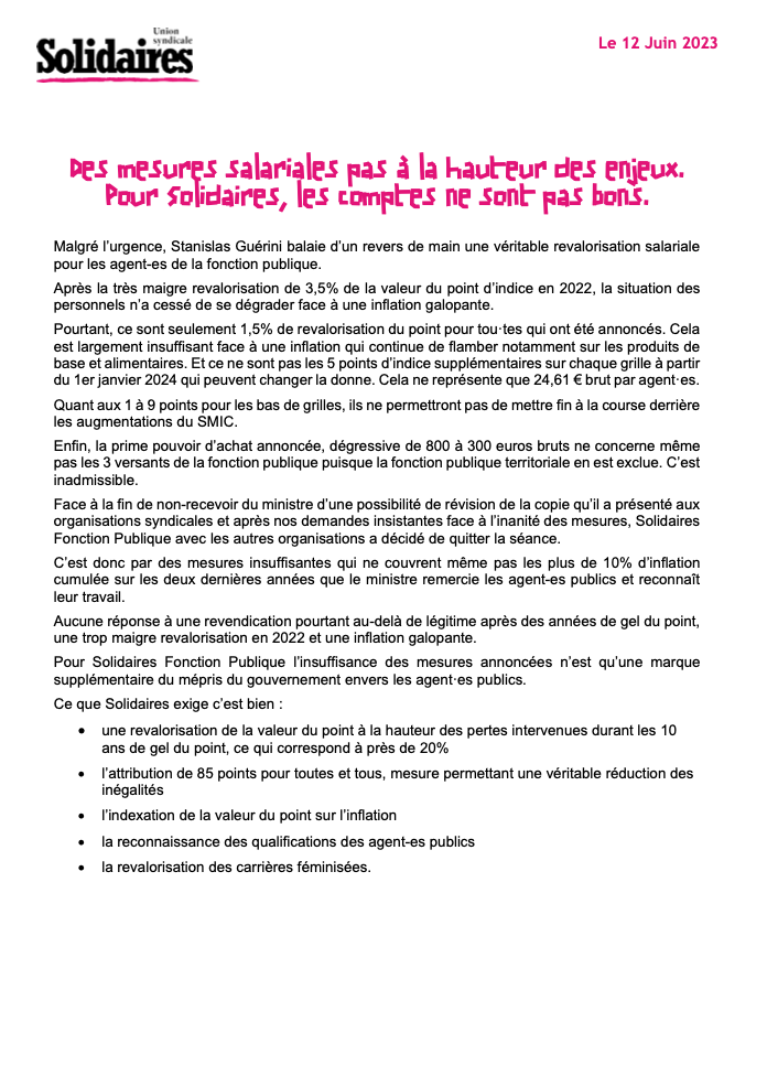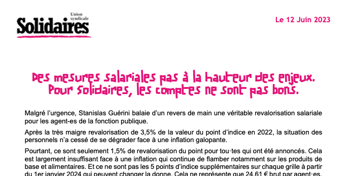 Des mesures salariales pas à la hauteur des enjeux. Pour Solidaires, les comptes ne sont pas bons.
