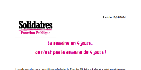 Il ne faut pas s’y tromper non plus. Travailler en 4 jours, ce n’est pas “chacun·e choisit le jour où il ne souhaite pas travailler dans la semaine”... les mercredis et vendredis par exemple.