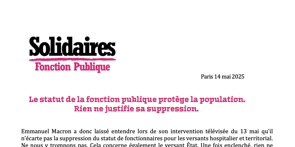 Le chef de l’Etat ne peut ignorer que ce même 13 mai les agentes et agents publics étaient mobilisé·es pour leurs droits et ceux de la population : meilleurs salaires, meilleures conditions de travail, services publics pour toutes et tous.