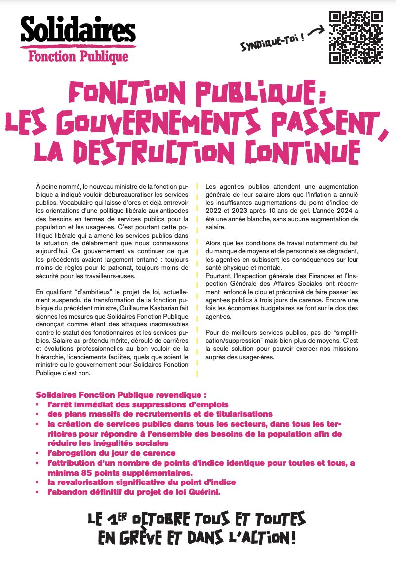Solidaires Fonction Publique revendique: