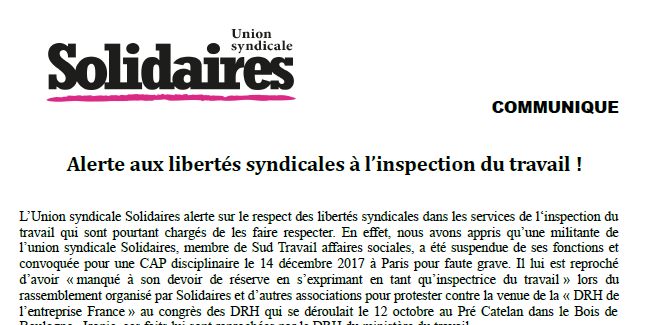 Alerte aux libertés syndicales à l’inspection du travail !
