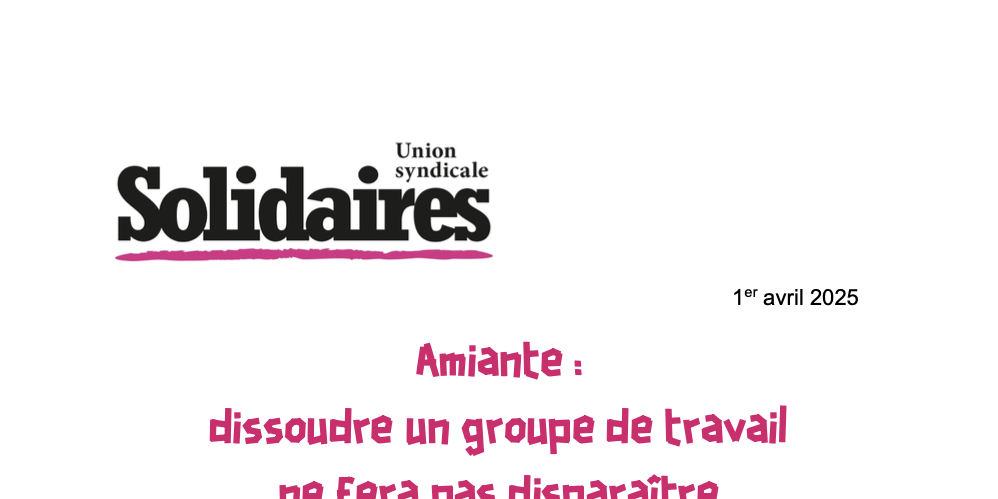 L’Union syndicale Solidaires rappelle qu’hier comme aujourd’hui l’amiante est un poison mortel et insiste pour que des mesures urgentes soient prises :