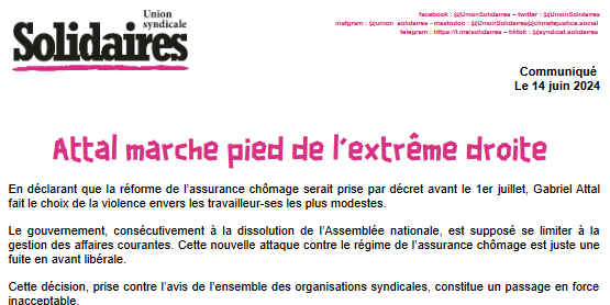En déclarant que la réforme de l’assurance chômage serait prise par décret avant le 1er juillet, Gabriel Attal fait le choix de la violence envers les travailleur-ses les plus modestes.