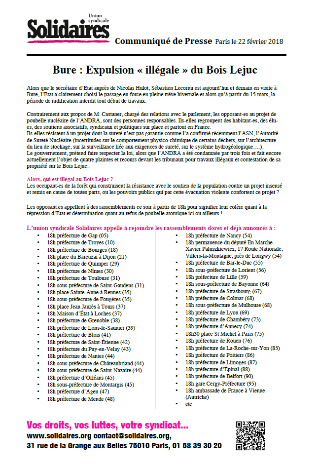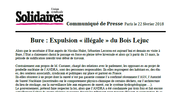 Bure : Expulsion « illégale » du Bois Lejuc