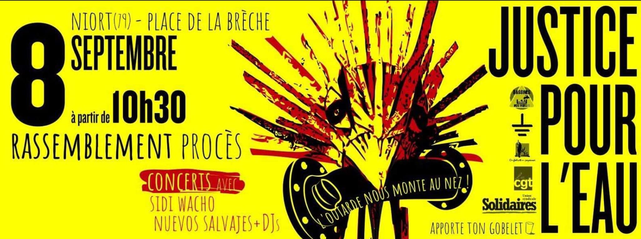 Le 5 septembre la préfecture des Deux-Sèvres lance, une fois de plus, une offensive contre les défenseurs de l'eau en bouclant le périmètre autour du tribunal de Niort où doit se tenir vendredi le procès des porte-parole de la CGT, la Confédération paysanne, Solidaires et des militants des Soulèvements de la Terre. Un référé liberté porté par la CGT, Solidaires, la Confédération paysanne, le Syndicat des Avocats de France, le Syndicat de la Magistrature et les prévenus a été déposé en réponse.