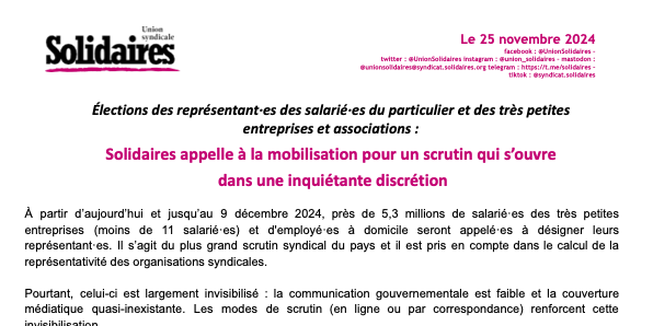 Élections des représentant·es des salarié·es du particulier et des très petites entreprises et associations : Solidaires appelle à la mobilisation pour un scrutin qui s’ouvre dans une inquiétante discrétion