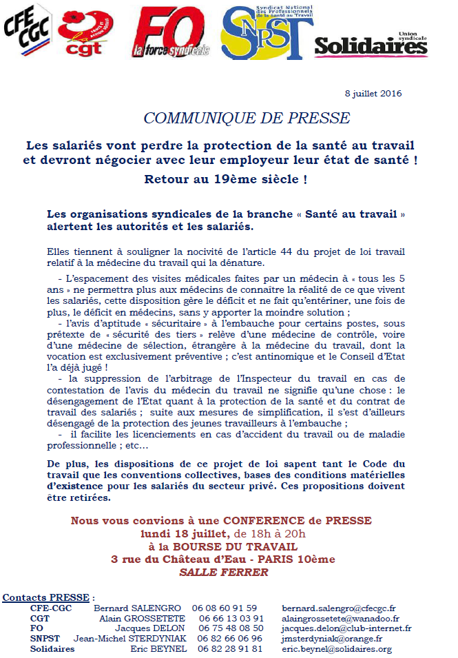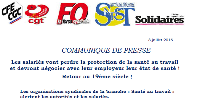 Les salariés vont perdre la protection de la santé au travail et devront négocier avec leur employeur leur état de santé ! Retour au 19ème siècle !