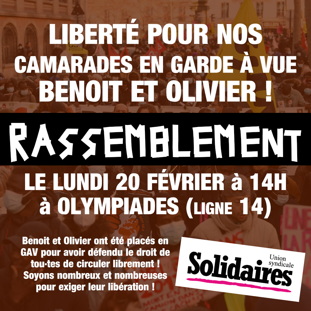 Nous appelons à un rassemblement lundi 20 février pour la libération de Benoît à 14H à la station Olympiades.