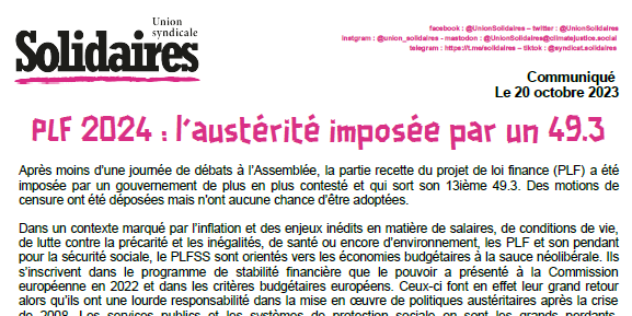 PLF 2024 : l’austérité imposée par un 49.3