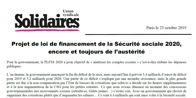 Pour le gouvernement, le PLFSS 2020 a pour objectif de « maîtriser les comptes sociaux » c’est-à-dire réduire les dépenses publiques.