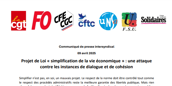 A ce titre le projet de loi « simplification de la vie économique » présenté ce jour à l’assemblée n’est pas nocif, à priori, pour les droits des travailleurs.