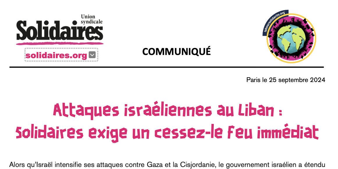 Attaques israéliennes au Liban : Solidaires exige un cessez-le feu immédiat