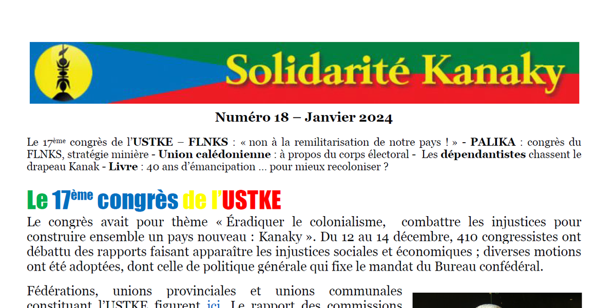 Bulletin Solidarité Kanaky n° 18 - Janvier 2024
