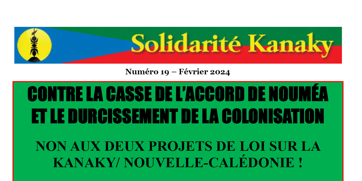 Voilà le numéro 19 du bulletin du Collectif Solidarité Kanaky. Contre la casse de l'accord de Nouméa et le durcissement de la colonisation. Non aux deux projets de loi, non au dégel du corps électoral