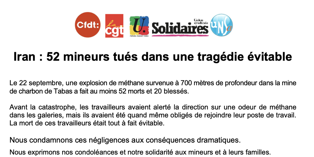 Nous exprimons nos condoléances et notre solidarité aux mineurs et à leurs familles.