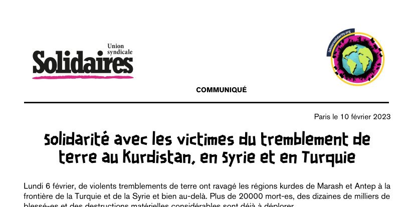 Lundi 6 février, de violents tremblements de terre ont ravagé les régions kurdes de Marash et Antep à la frontière de la Turquie et de la Syrie et bien au-delà. Plus de 20000 mort-es, des dizaines de milliers de blessé-es et des destructions matérielles considérables sont déjà à déplorer.