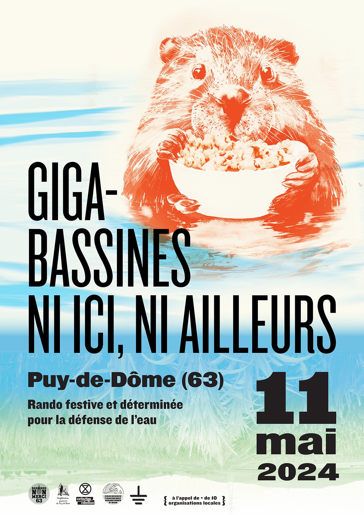 Au-delà de Billom, cette fuite en avant productiviste s’emballe, encouragée par des politiques agricoles, entraînant la destruction des écosystèmes et le déclin spectaculaire du vivant. Nous sommes toutes et tous concerné·e·s par la gestion de l’eau et de l’environnement. Que ce soit pour notre alimentation ou pour la préservation d’une biodiversité qui ne cesse de se réduire. L’agro-industrie a décidé de lancer une vaste entreprise d’accaparement de l’eau au détriment de la qualité et du partage de ce bien commun. Les mégabassines, énormes bassins artificiels, plastifiés et imperméables, financées principalement avec de l’argent public, ont pour but de maintenir coûte que coûte une irrigation intensive de monocultures et/ou cultures à haute valeur ajoutée, détenues par une minorité d'exploitants agricoles et destinées, pour l’essentiel au marché mondial des semences, à l'industrie agro-alimentaire ou à l'alimentation animale.
