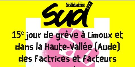 Chèques à adresser au syndicat SUD PTT Aude, 12 rue Georges Clémenceau, 11000 Carcassonne