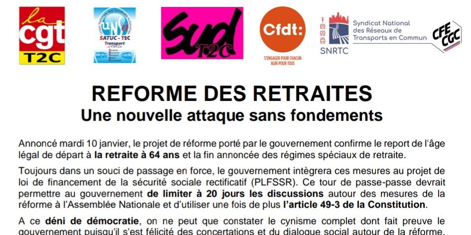 Communiqué de l'intersyndicale de la T2C, transports en communs de la métropole clermontoise.