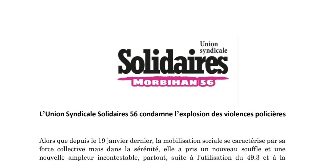 Communiqué Solidaires 56 - Stop aux violences policières- soutien à nos camarades