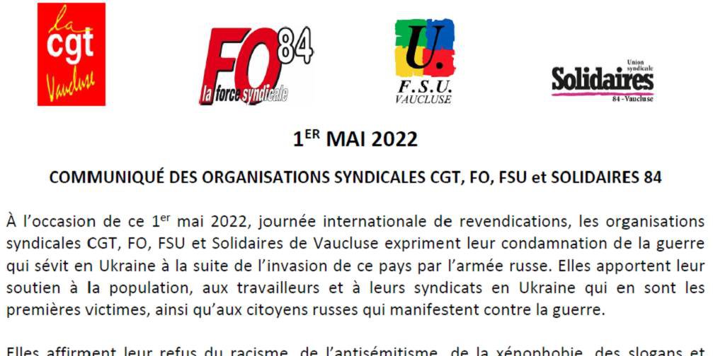 Manif du 1er mai, rendez-vous 10h30 cours Jean Jaurès à Avignon.