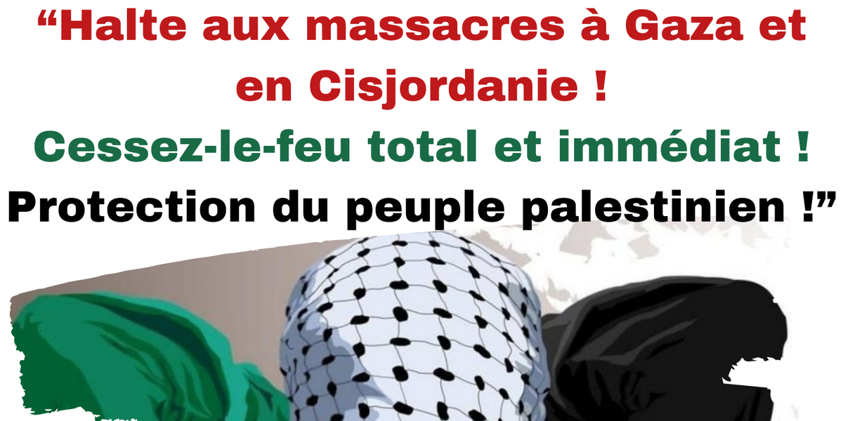 Halte aux massacres à Gaza et en Cisjordanie ! Cessez-le-feu total et immédiat, protection du peuple palestinien !