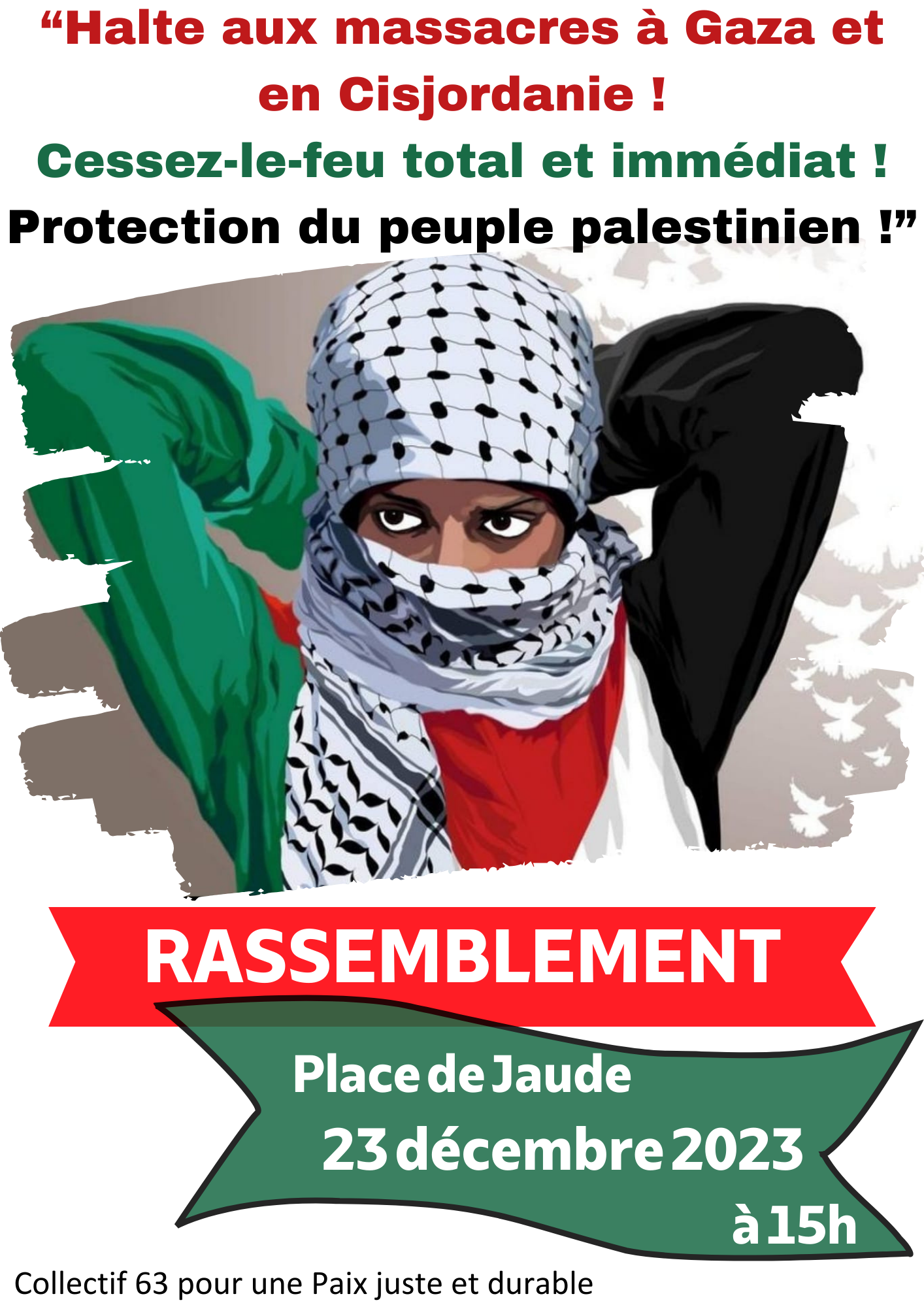 Rassemblement 23/12 Clermont-Ferrand "Halte aux massacres à Gaza et en Cisjordanie !"