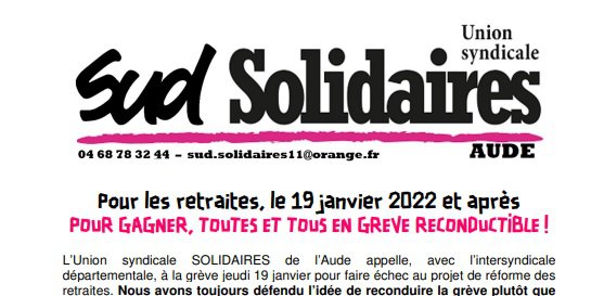 Retraites : 19 janvier et après, mobilisation syndicale dans l'Aude