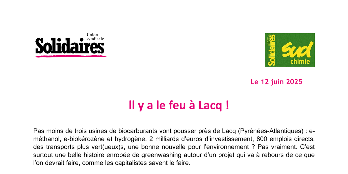 Cela pourrait sembler paradoxal qu’un syndicat de travailleurs et travailleuses de la chimie s’oppose à un projet de production chimique. La raison est simple : à quel prix ?