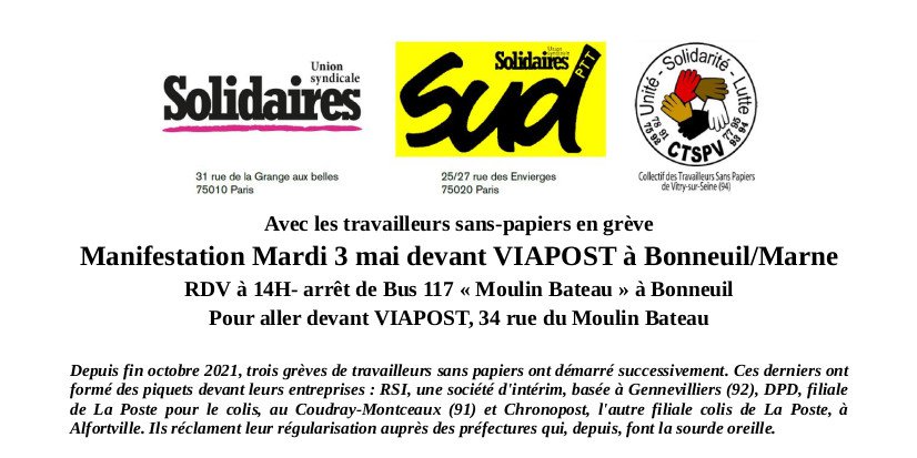 Ce système, il est aussi en œuvre dans la filiale VIAPOST, où ont été ou sont employés des travailleurs sans papiers en lutte sur les piquets. C’est pourquoi nous y manifestons aujourd’hui !