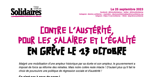 Contre l’austérité, pour les salaires et l’égalité, en grève le 13 octobre !