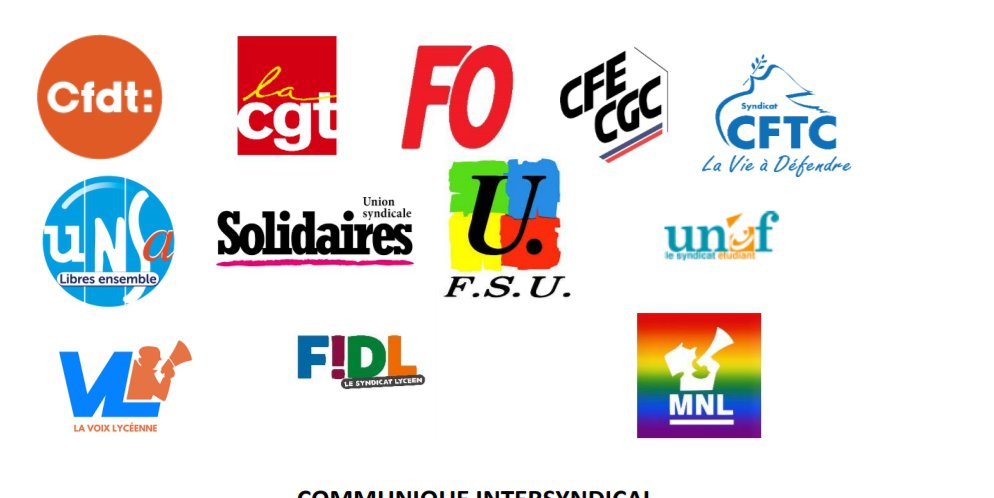 Cfdt, cftc, CGT, FSU, FO, Solidaires UNSA et organisations de jeunesses.
