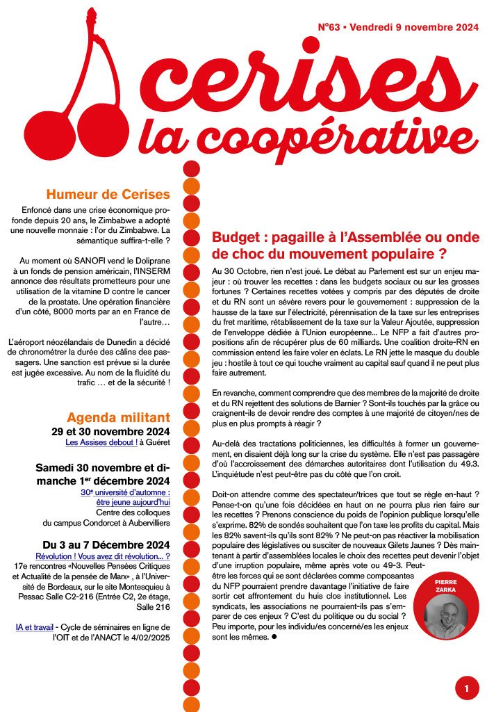 Le numéro de novembre de Cerise La Coopérative est sorti - n°63