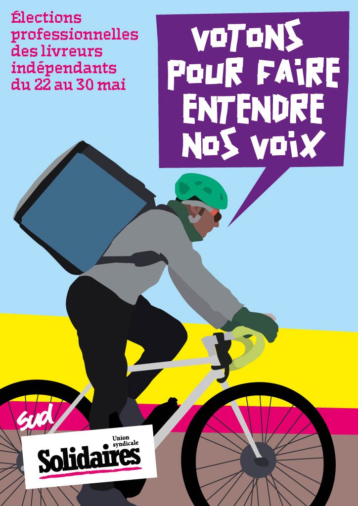 Solidaires est représentatif depuis 2 ans à l’ARPE. SUD Commerce et services - Solidaires s’est battu pour la rémunération des livreurs et a ainsi fait opposition à un accord sur la rémunération. Nous défendons également la sécu rité au travail. Les accidents trop nombreux et parfois mortels sont la conséquence de la pression mise par les plateformes et de rémunérations tirées vers le bas qui poussent à prendre tous les risques.
