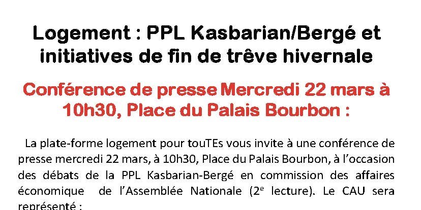 Logement : PPL Kasbarian/Bergé et initiatives de fin de trêve hivernale - Conférence de presse