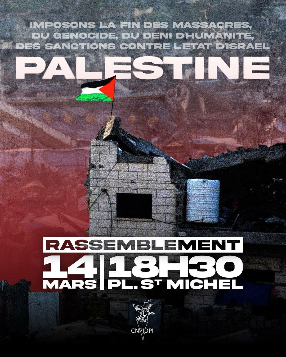 Pour la fin des massacres à Gaza et en Cisjordanie, pour le respect du droit international et l'autodétermination du peuple Palestinien : rassemblement le vendredi 14 mars, 18h30, Place Saint Michel à Paris.