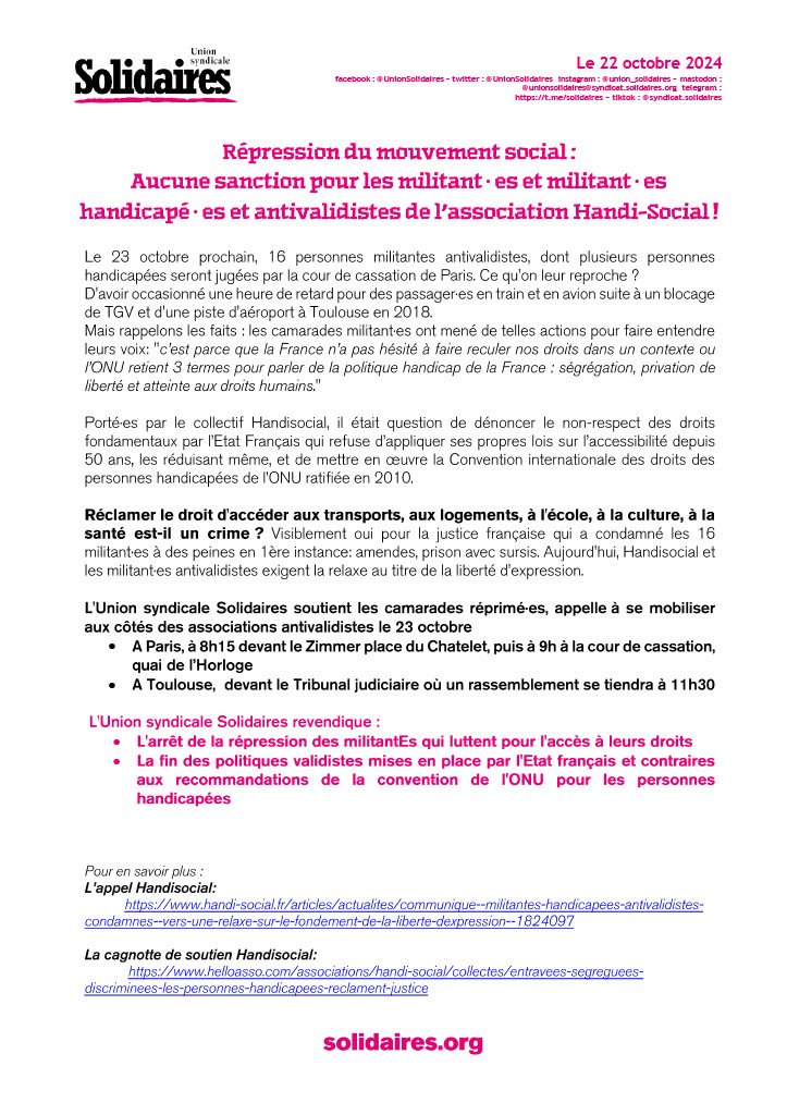 https://www.handi-social.fr/articles/actualites/communique--militantes-handicapees-antivalidistes-condamnes--vers-une-relaxe-sur-le-fondement-de-la-liberte-dexpression--1824097