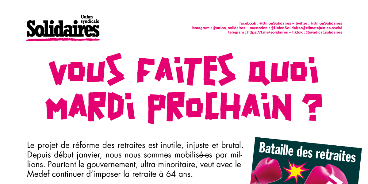 Pour entrer en contact avec nos syndicats et nos solidaires départementaux : https://solidaires.org/