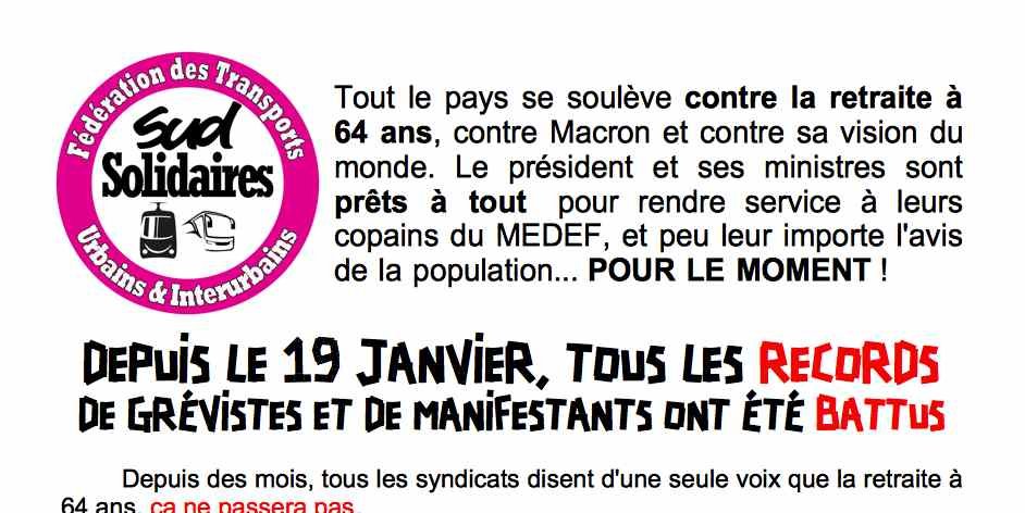 Publié le 10 mars 2023 par Fédération SUD Solidaires des Transports Urbains et Inter-urbains