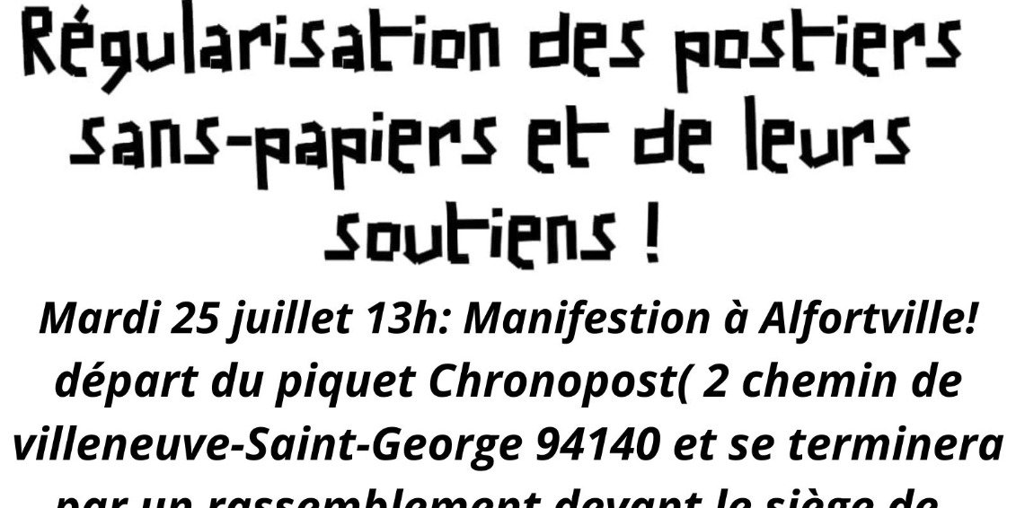 Avec les travailleurs sans-papiers en grève : Manifestation Mardi 25 juillet de Chronopost Alfortville au siège de Derichebourg à Créteil