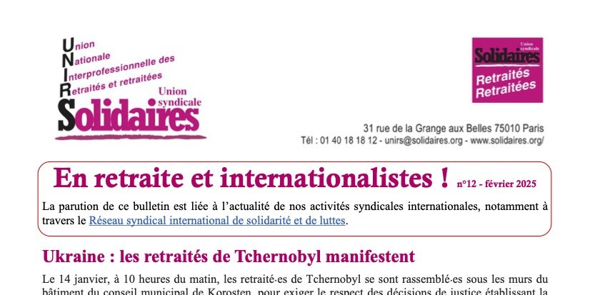 Au sommaire du n°12 du bulletin En retraite et internationalistes ! de l'UNIRS :