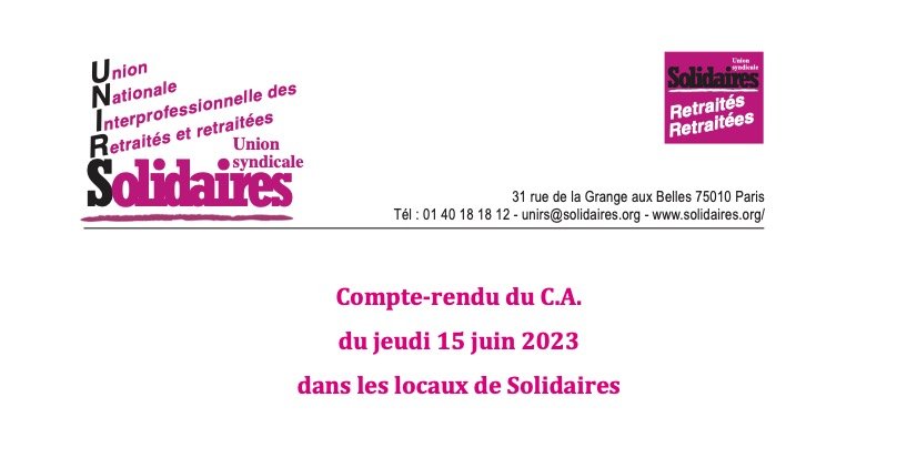 Compte-rendu de la réunion du CA de l’UNIRS le 15 juin