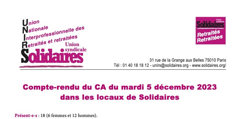 Voici le compte-rendu de la réunion du CA qui s'est tenue le 5 décembre 2023.