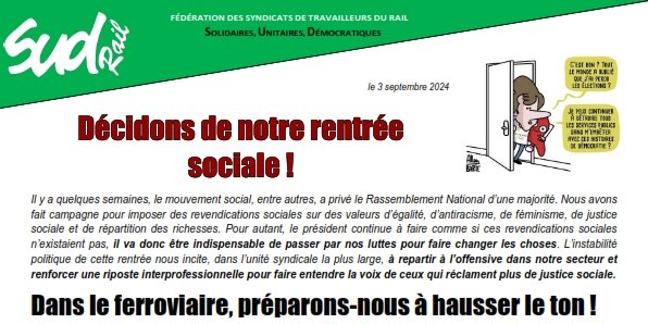 L’instabilité politique de cette rentrée nous incite, dans l’unité syndicale la plus large, à repartir à l’offensive dans notre secteur et renforcer une riposte interprofessionnelle pour faire entendre la voix de ceux qui réclament plus de justice sociale.