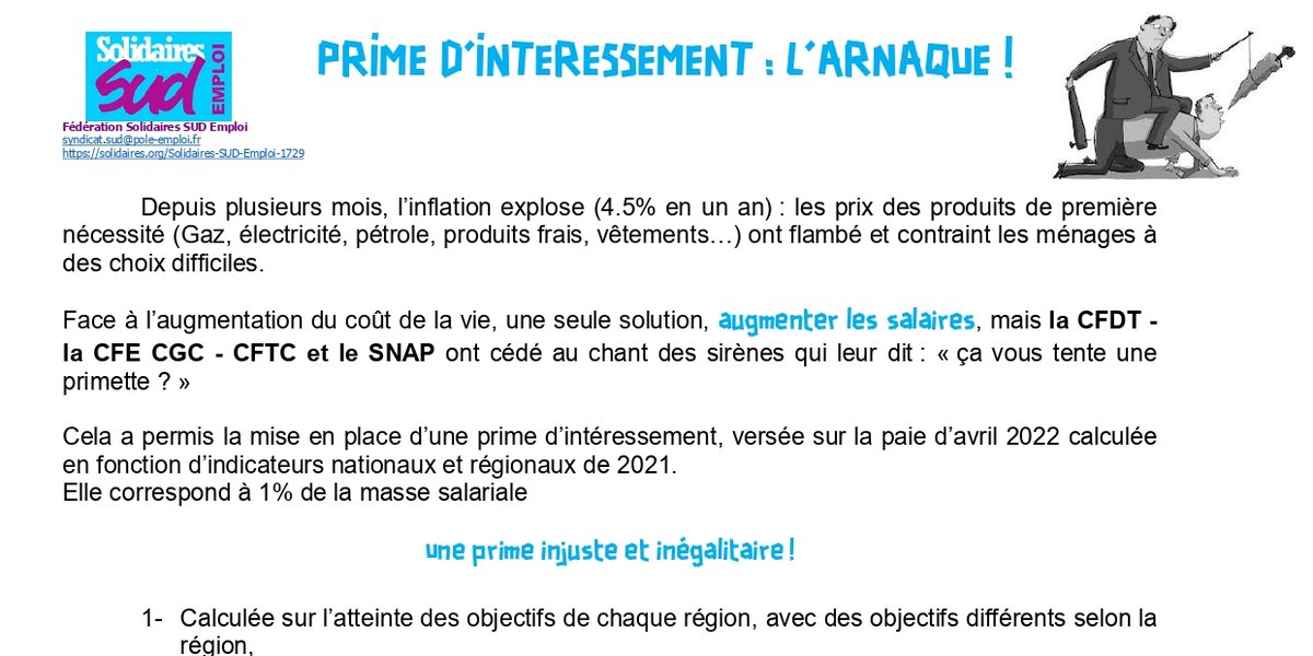 Des primes ... déprime ... l'arnaque des primes d'intéressement