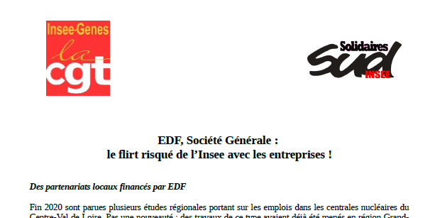 La CGT Insee-Genes et SUD Insee militent pour l’indépendance de l’Insee ; de tels projets ne peuvent que nuire à l’impartialité, l’objectivité et à la réputation des travaux de l’Institut.