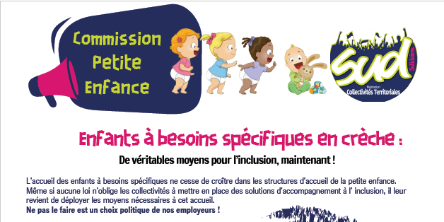 L’accueil des enfants à besoins spécifiques ne cesse de croître dans les structures d’accueil de la petite enfance. Même si aucune loi n’oblige les collectivités à mettre en place des solutions d’accompagnement à l’ inclusion, il leur revient de déployer les moyens nécessaires à cet accueil.