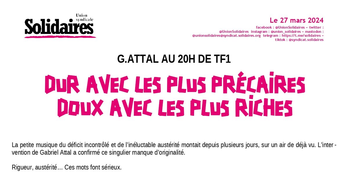 G. ATTAL : DUR avec les précaires, DOUX avec les plus riches