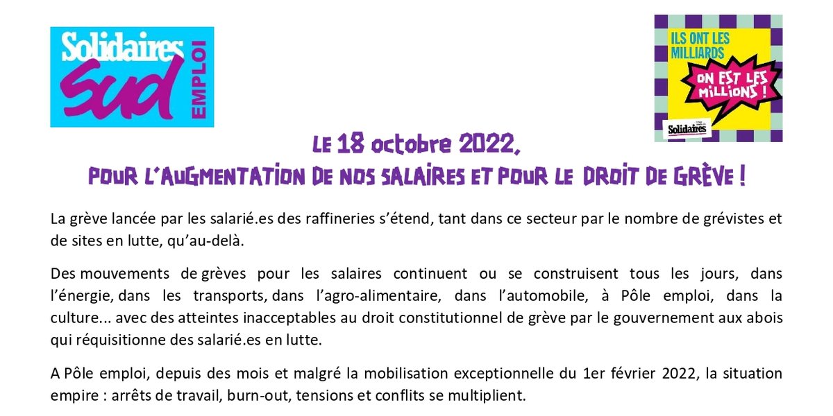 Le 18 octobre 2022, pour l'augmentation de nos salaires et le droit de grève